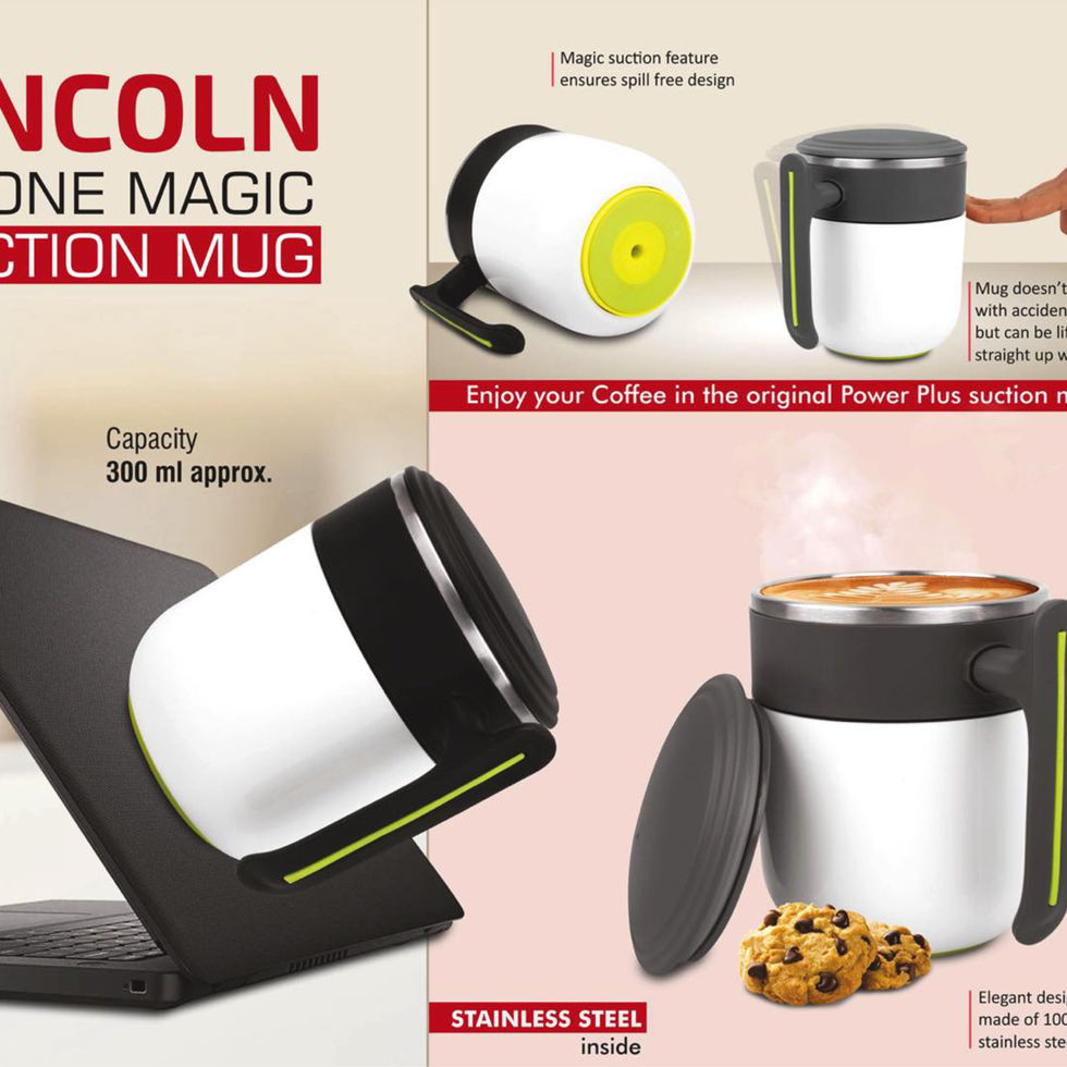 Lincoln : 2 Tone Magic Suction Mug with Stainless Steel inside | Leak proof | BPA Free | Capacity 300 ml approx | Black, Gray